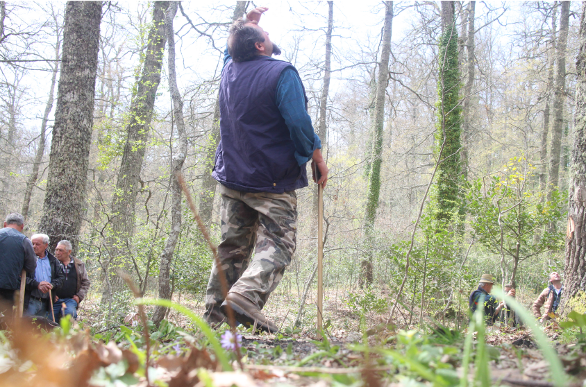 Alle prime luci dell’alba, dai dintorni del paese, massari e boscaioli si dirigono verso il bosco di Montepiano, una cerreta di circa mille ettari situata a pochi chilometri dall’abitato. Sono loro gli esperti incaricati di scegliere l’albero più alto e dritto, che fungerà da Maggio. Accompagnati da curiosi, gli esperti si aggirano nel bosco, scrutando le chiome e testando i tronchi per stabilire ad occhio l’altezza, fino a scegliere il Maggio. Contestualmente, vengono selezionati altri cerri – la Croccia e gli Spond- che formeranno il corteo durante il trasporto e saranno utilizzati per innalzare il Maggio.